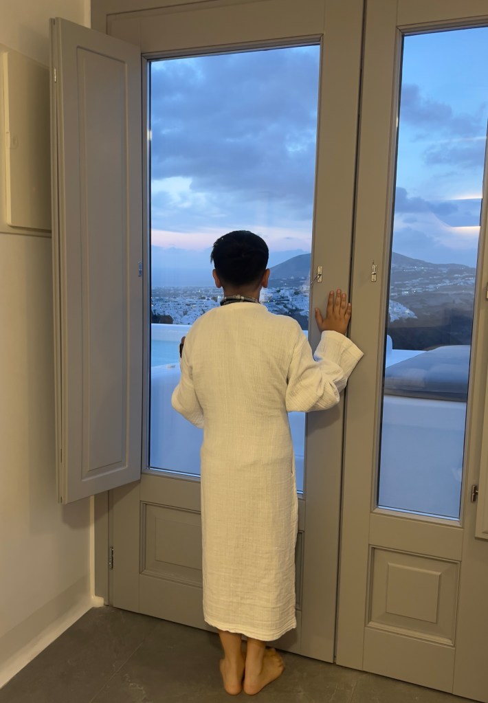 So back to those- early mornings and late evenings in the jacuzzi, overlooking the caldera, it felt like pure magic and my son always joined me.. There was something so peaceful about sitting in the warm water( even with my son ), taking in the breathtaking views, and just letting the world slow down for a while.