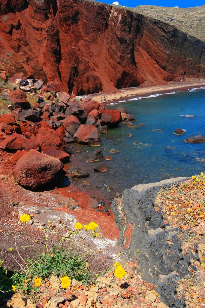 Santorini isn’t known for golden sandy beaches like Mykonos, but it has some of the most unusual and dramatic beaches you’ll ever see.