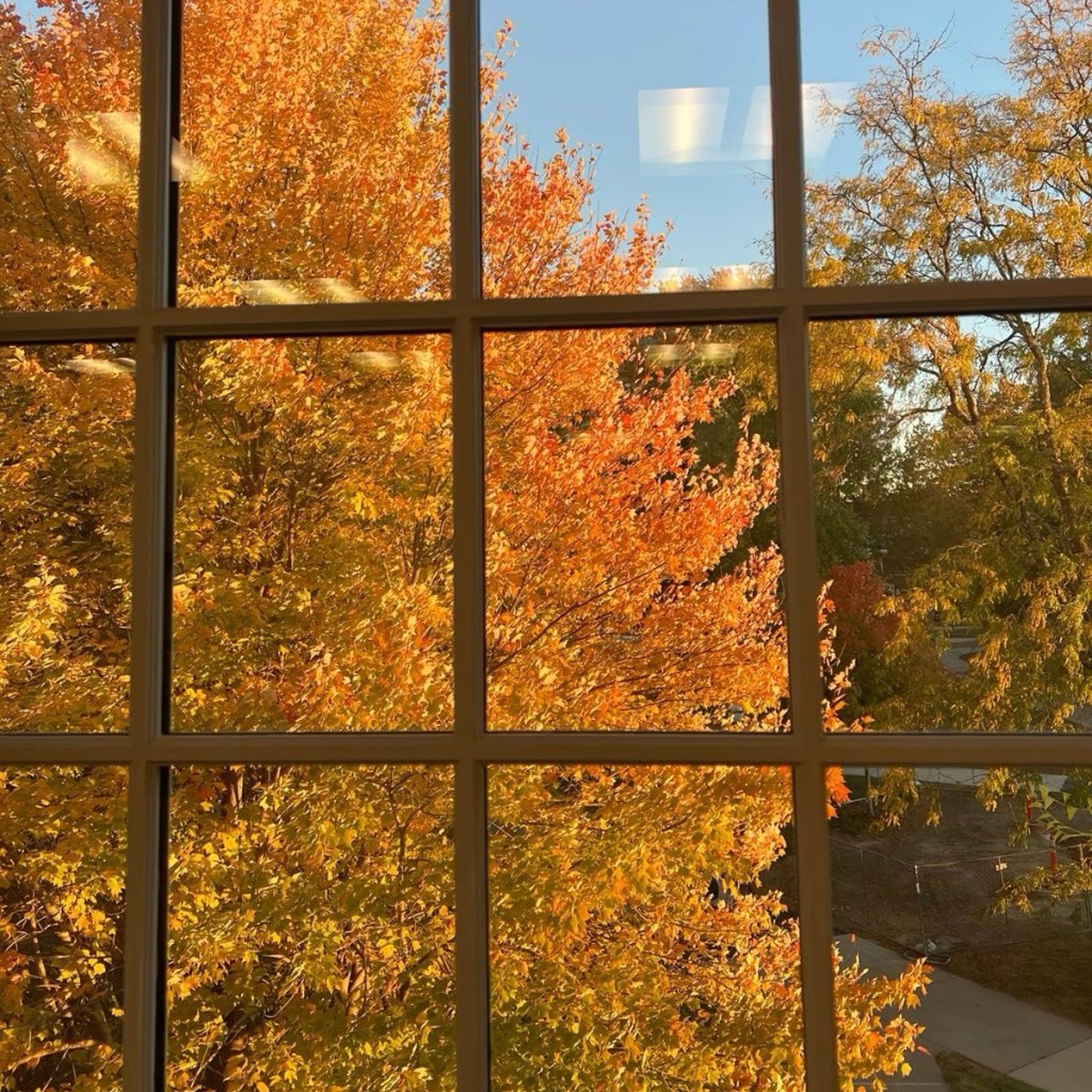 Later at the gym, I spotted a couple of leaves drifting down. Not the big golden crunch-fest of October, just a few quiet ones.. like nature sending a little spoiler alert.